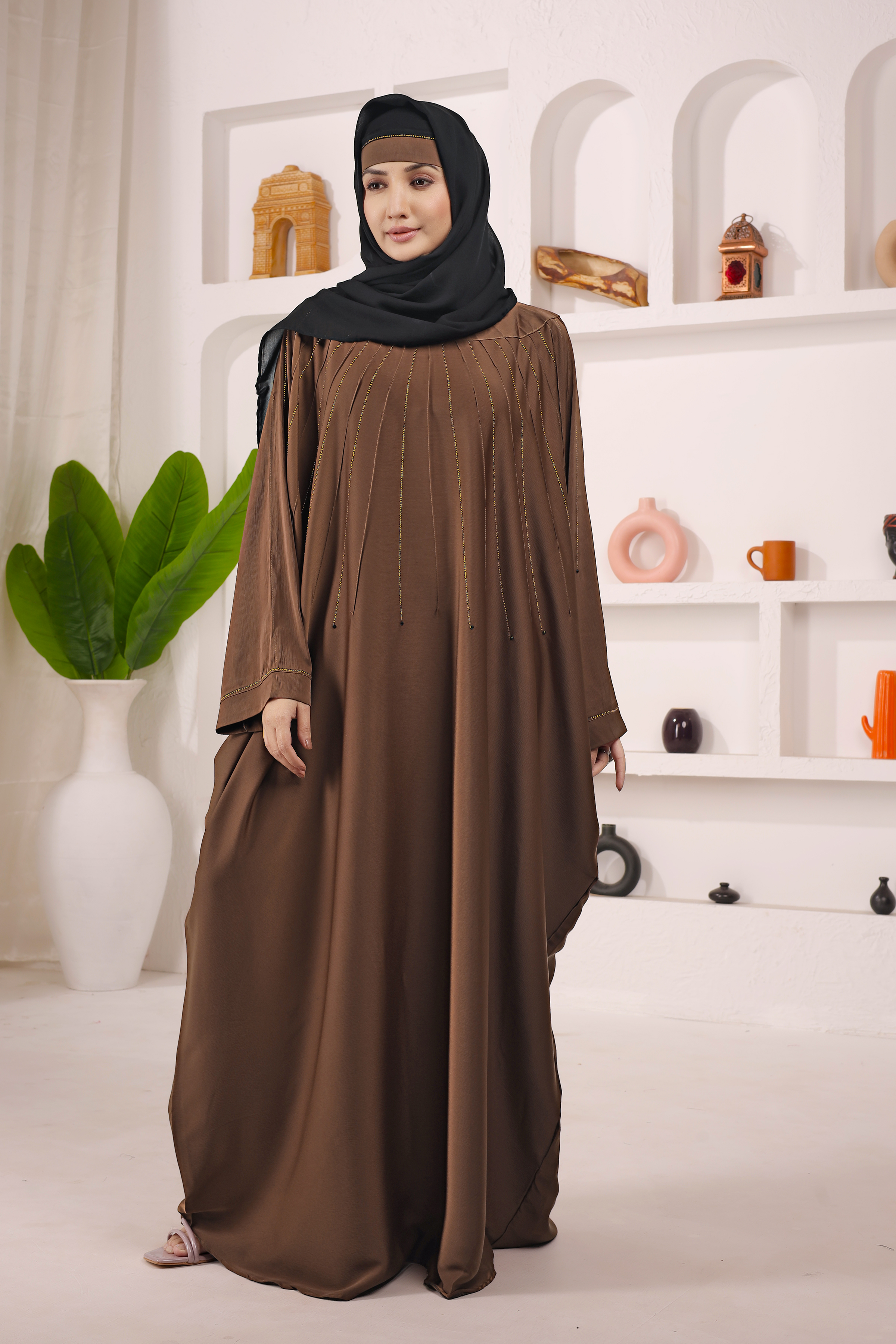 Elegant black kaftan abaya made with imported TikTok fabric. Featuring front & back pintex diamond work with same design. A premium new launch for modest wear.