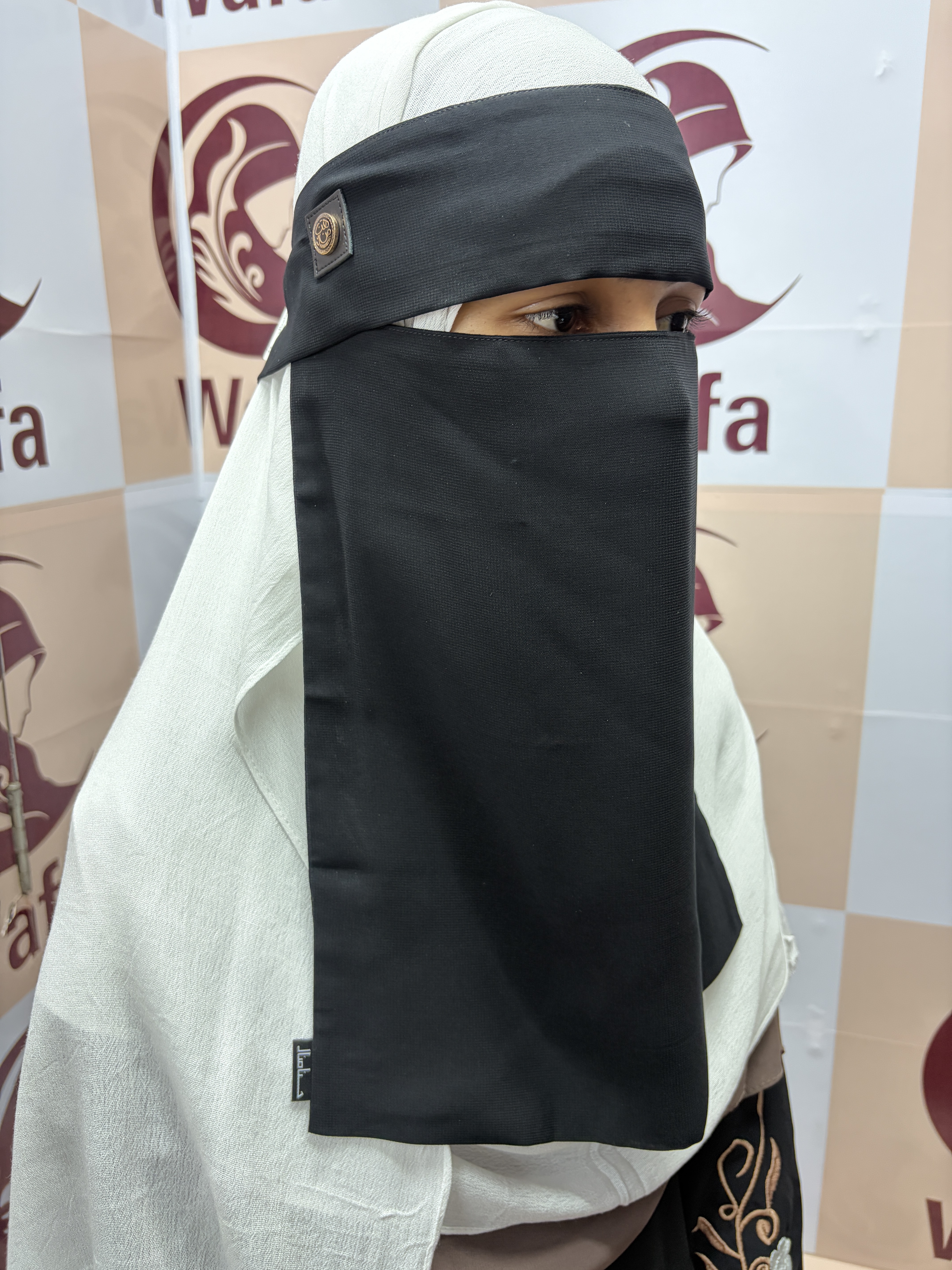 Premium Hanaamanal Nosepiece with SPF 50+ protection, soft breathable fabric, and signature brown logo patch. Perfect for daily modest wear with long-lasting comfort and secure coverage.