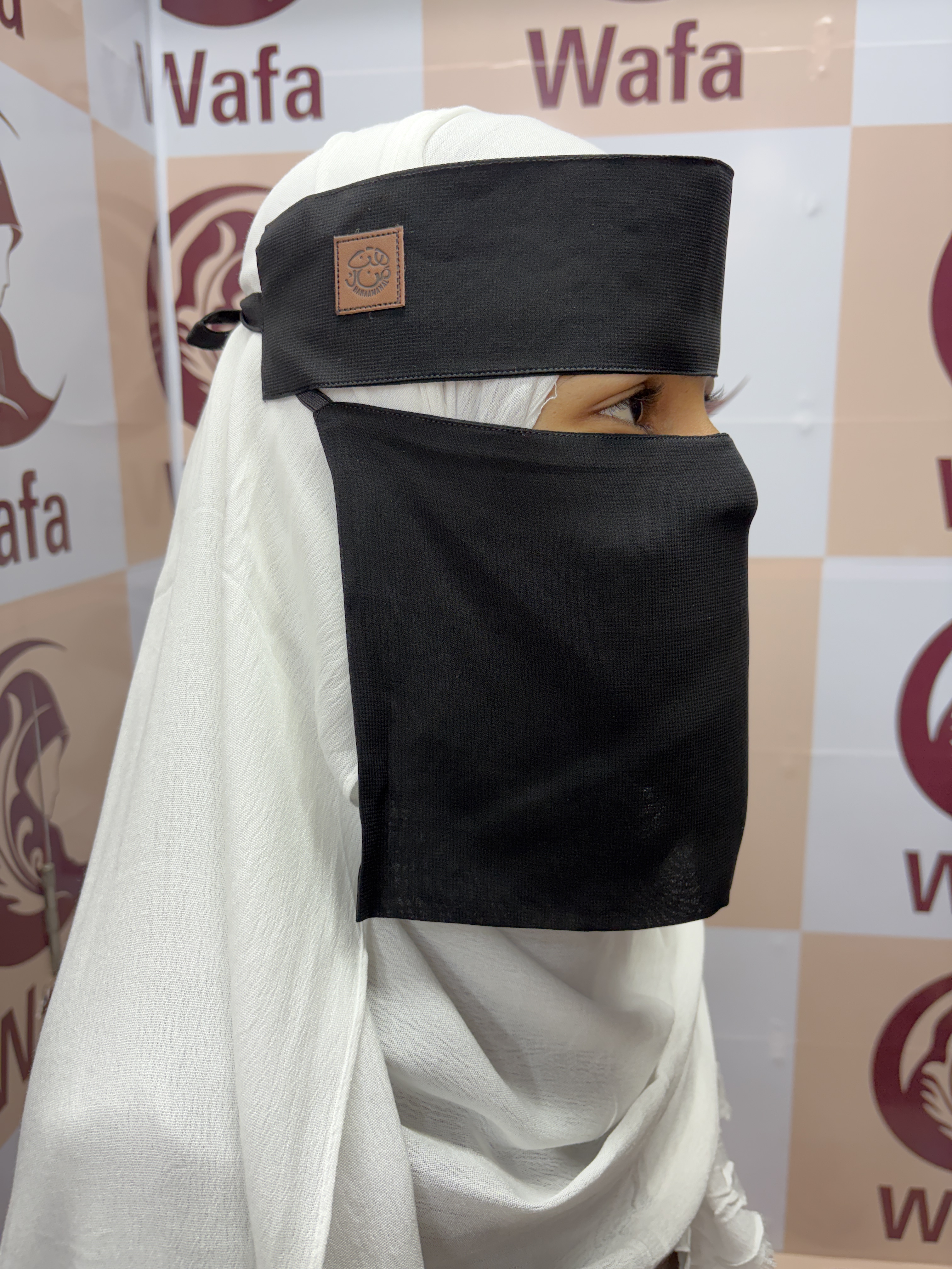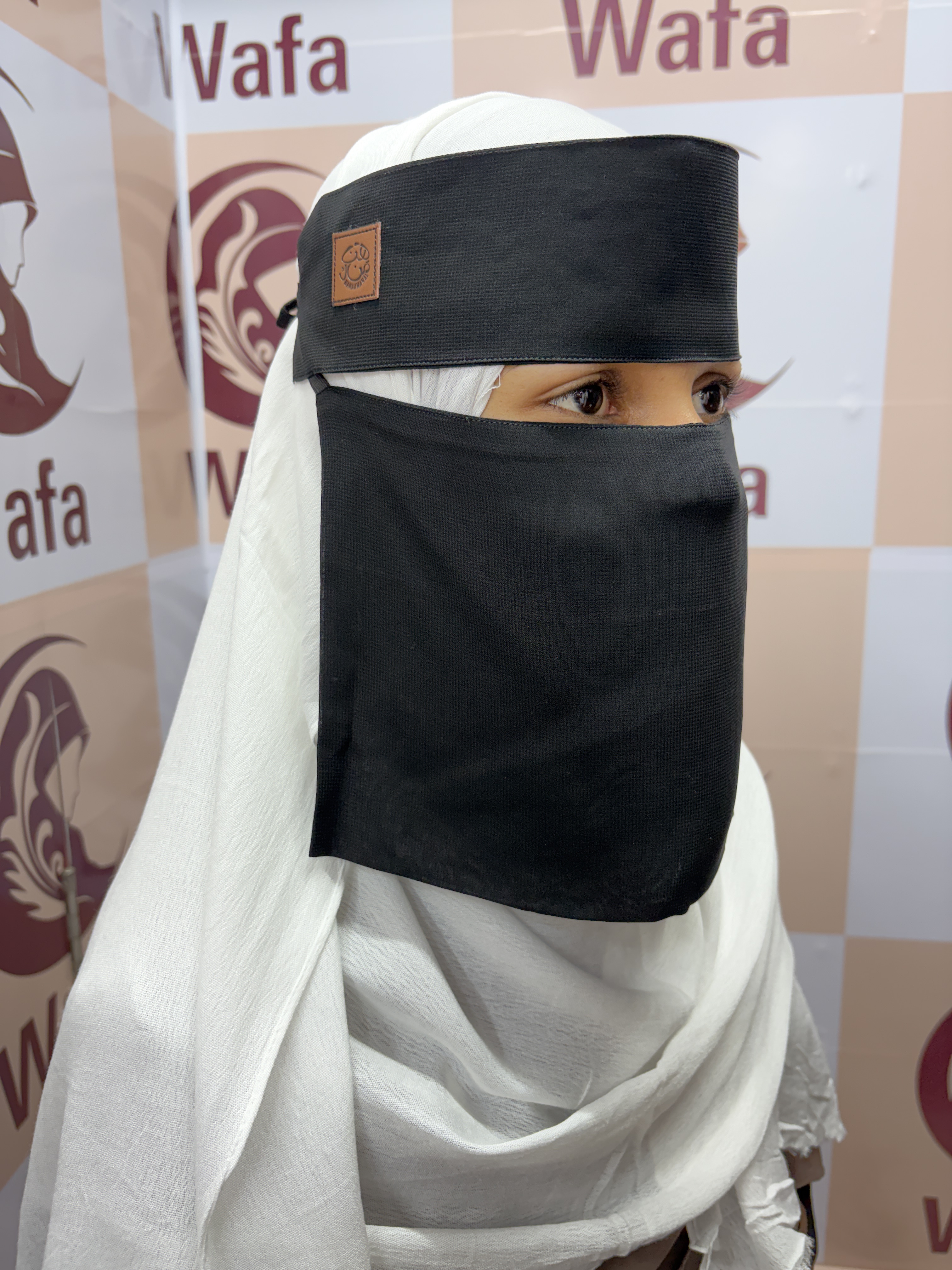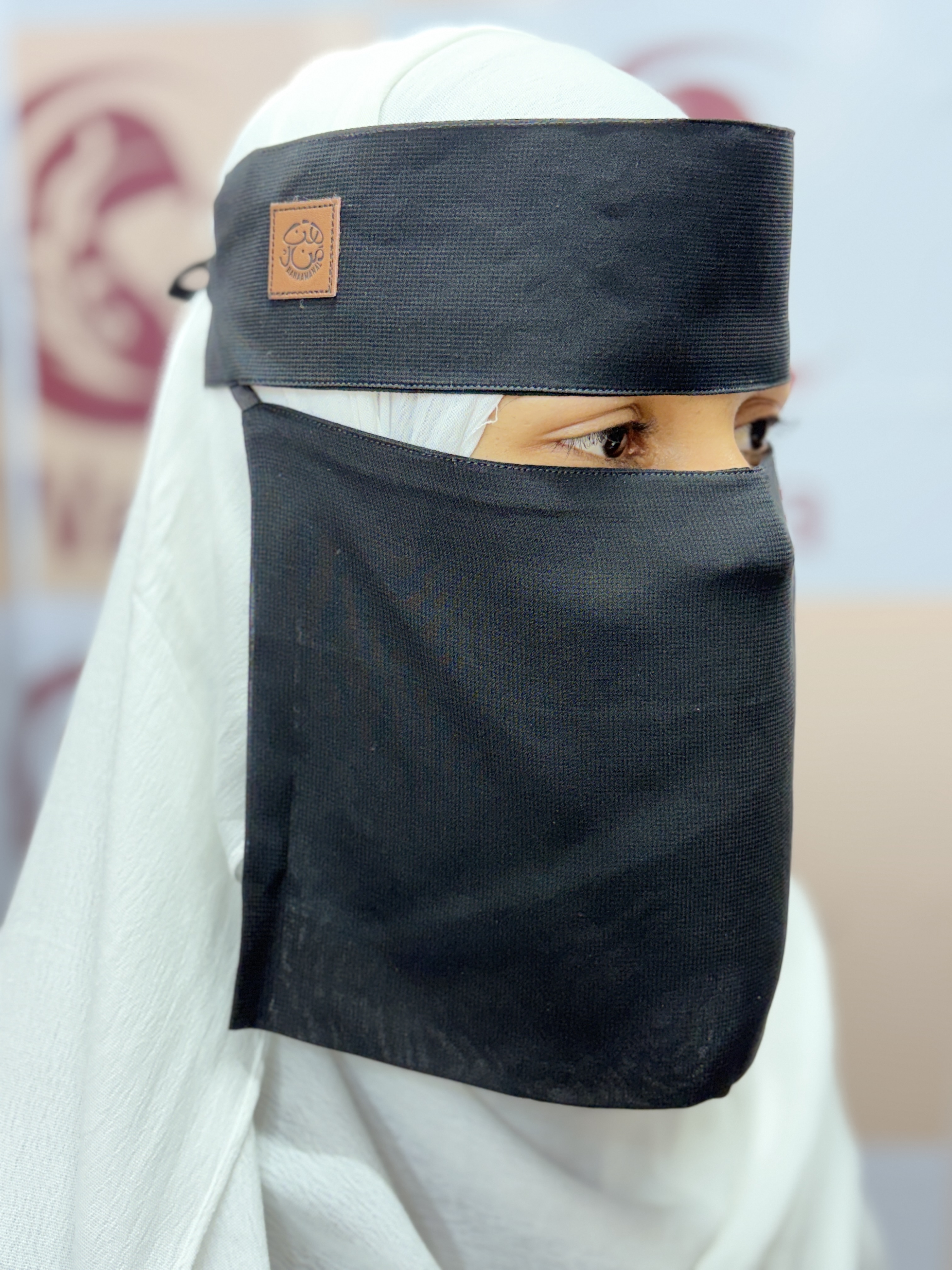Premium Hanaamanal Nosepiece with SPF 50+ protection, soft breathable fabric, and signature brown logo patch. Perfect for daily modest wear with long-lasting comfort and secure coverage.