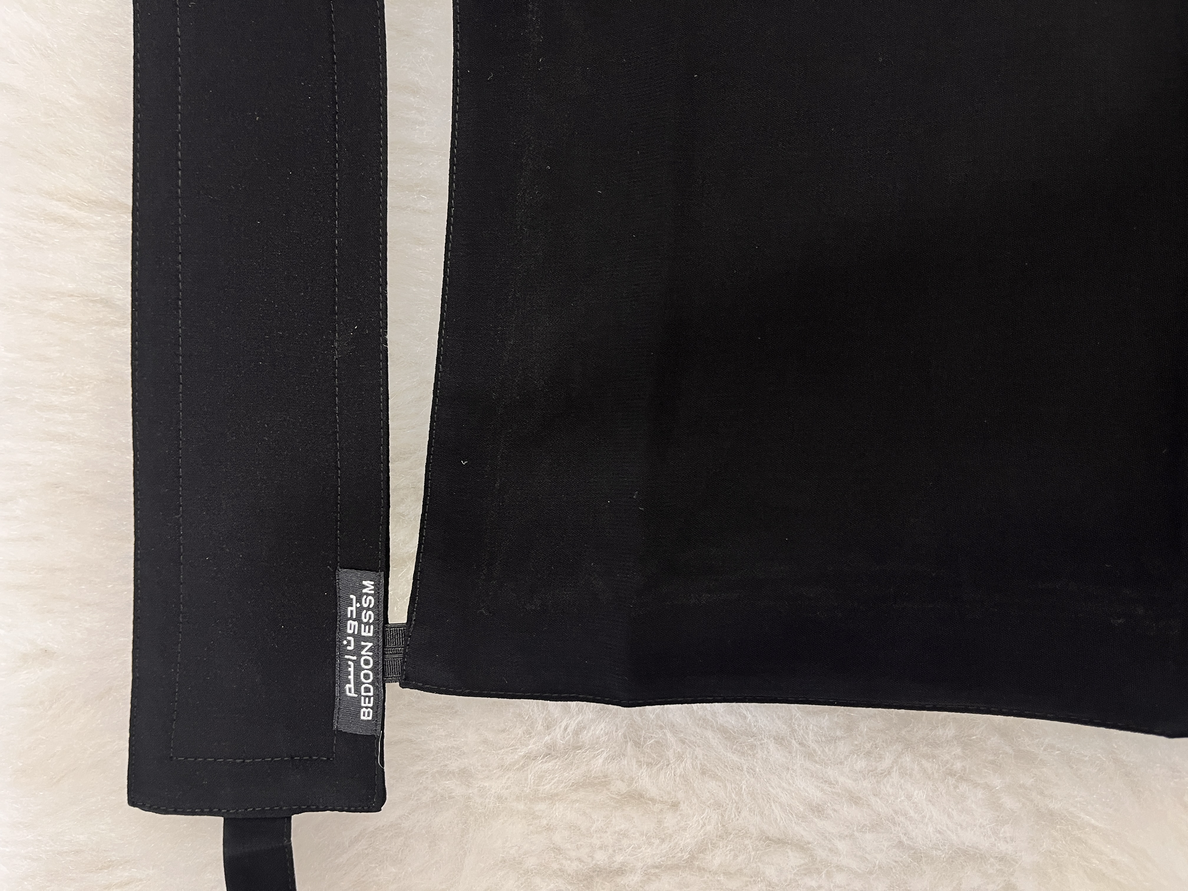 A durable and modest big-size black canvas nosepiece with strong elastic sides for a secure and comfortable fit. Designed for niqab users who prefer a sturdy, non-slip, long-lasting fabric nosepiece with extended coverage.