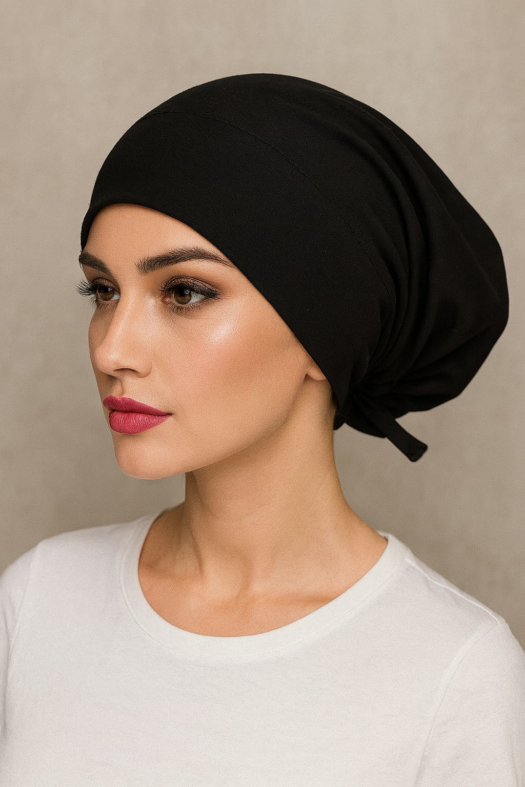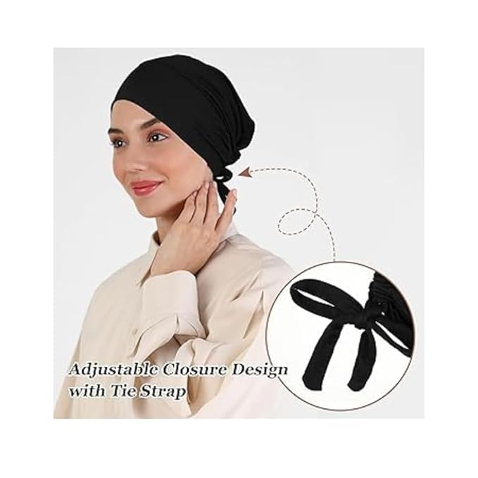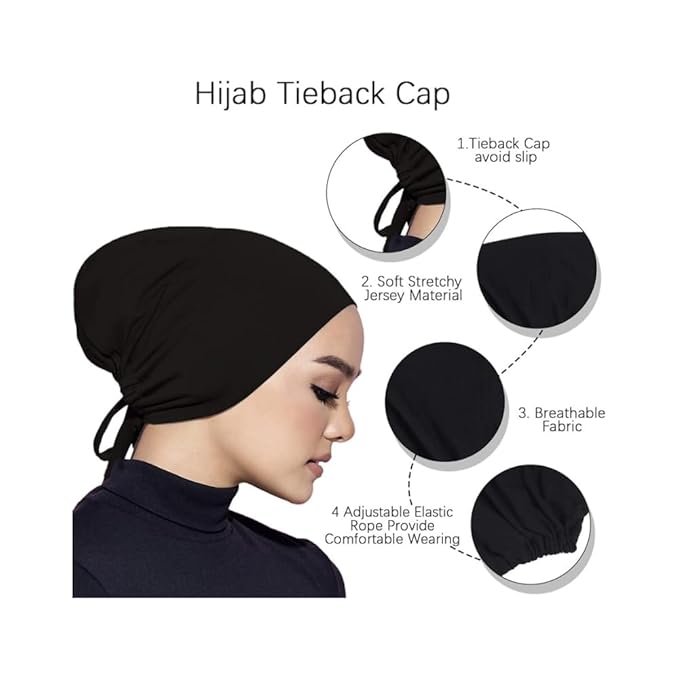 Experience the perfect blend of comfort, functionality, and style with our Tie-Back Hijab Caps. ThouA sleek, comfortable black cotton under-cap designed to serve as the perfect base layer for your hijab, niqab or scarf. Made from premium Malaysian cotton jersey for breathability and all-day comfort.